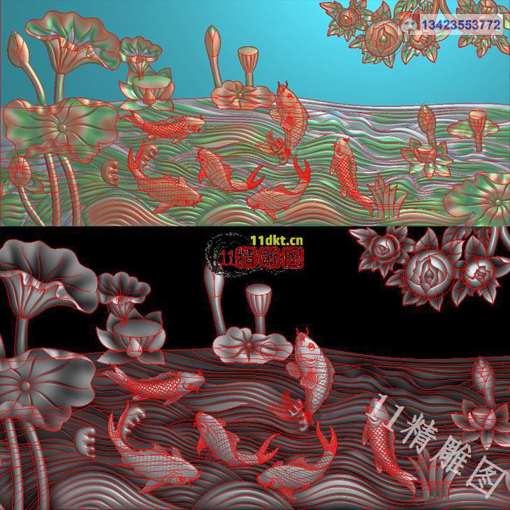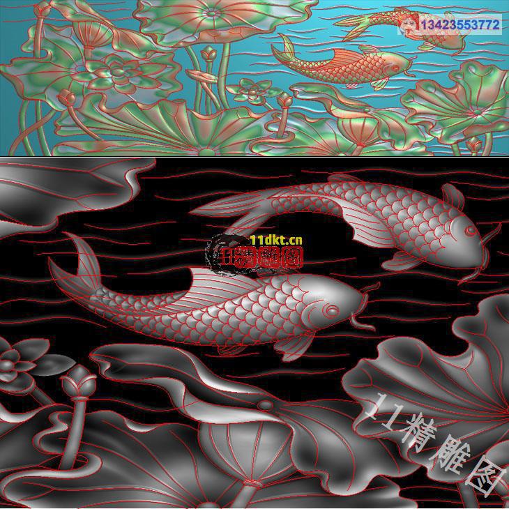 荷花鱼135精雕图