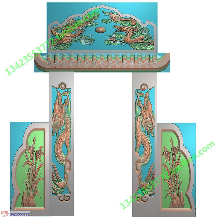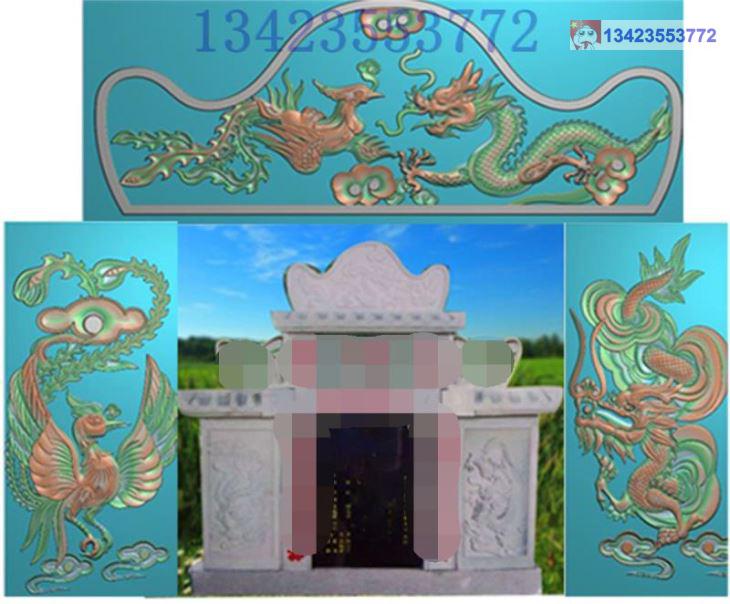 成套9石雕墓碑吉祥如意龙凤 碑头瓦