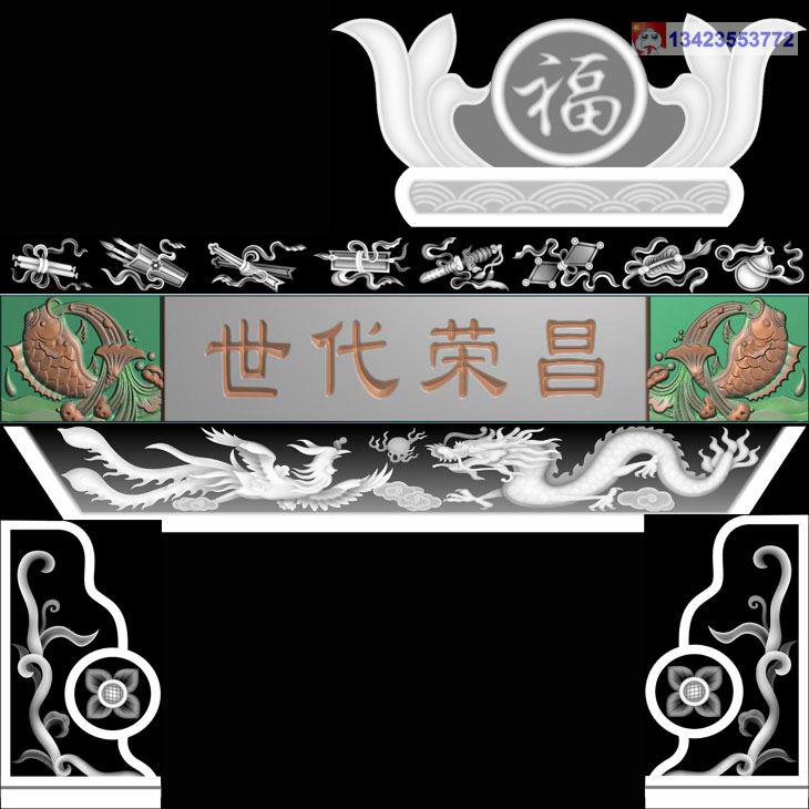 成套6 碑头图+龙凤福六张墓碑_套图_童男童女童子碑