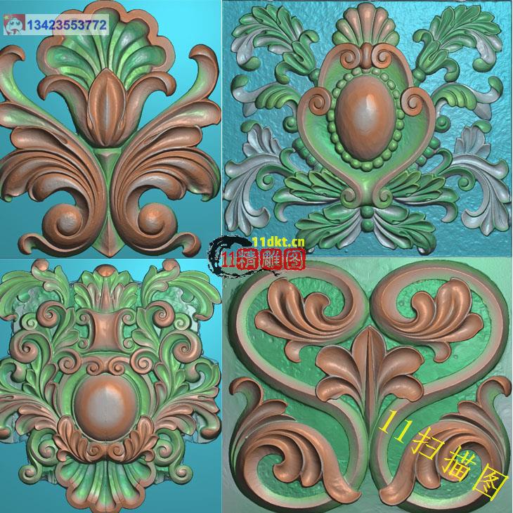 精雕图浮雕电脑雕刻欧式洋花 洋花石雕图 石雕建材花 柱花精雕图贴花扫描文件STL64