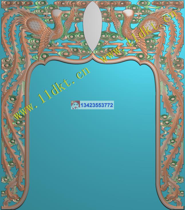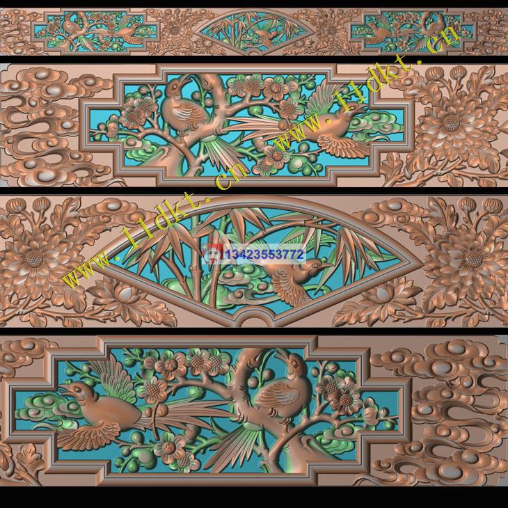 带线精雕图 佛龛神台花鸟对称顶花帽头