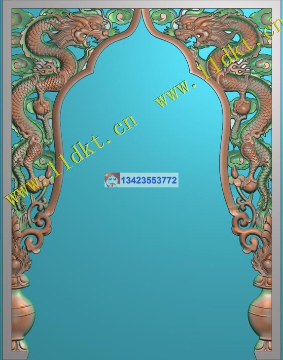 带线精雕图灰度图佛龛神台灵位双龙戏珠顶花挂落带拐角