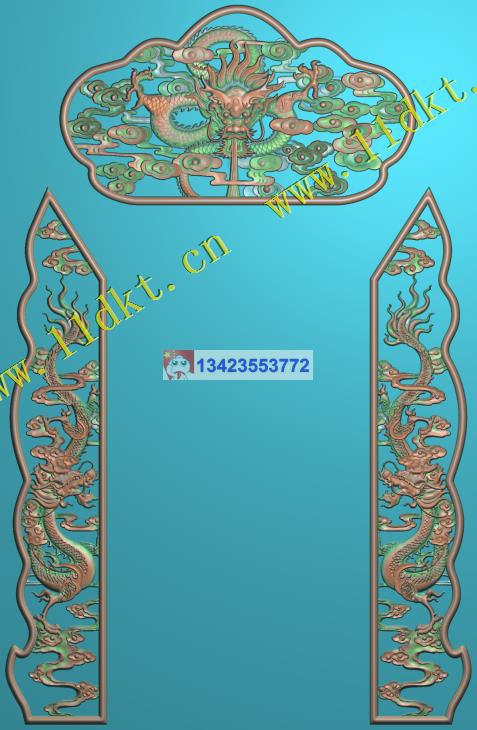带线精雕图灰度图佛龛神台灵位飞龙祥云顶花帽头挂落立柱