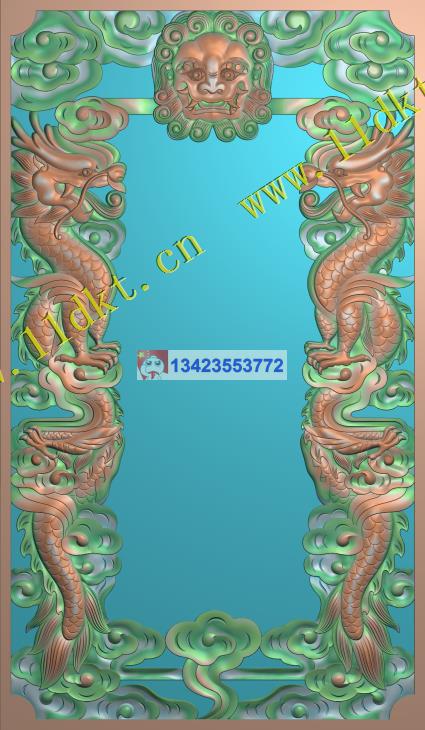 带线精雕图 佛龛神台灵位狮子头双龙牌位挂落