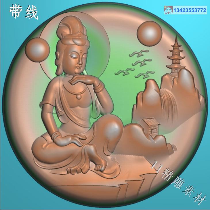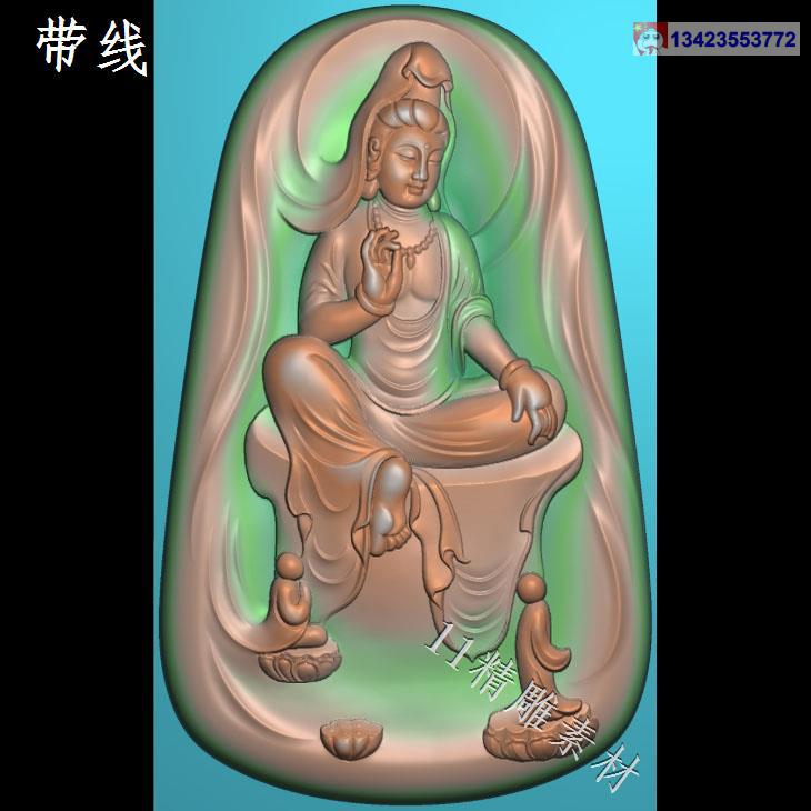 坐石拜观音挂件带线精雕图 电脑雕刻素材11精雕图大全5网