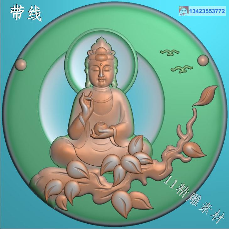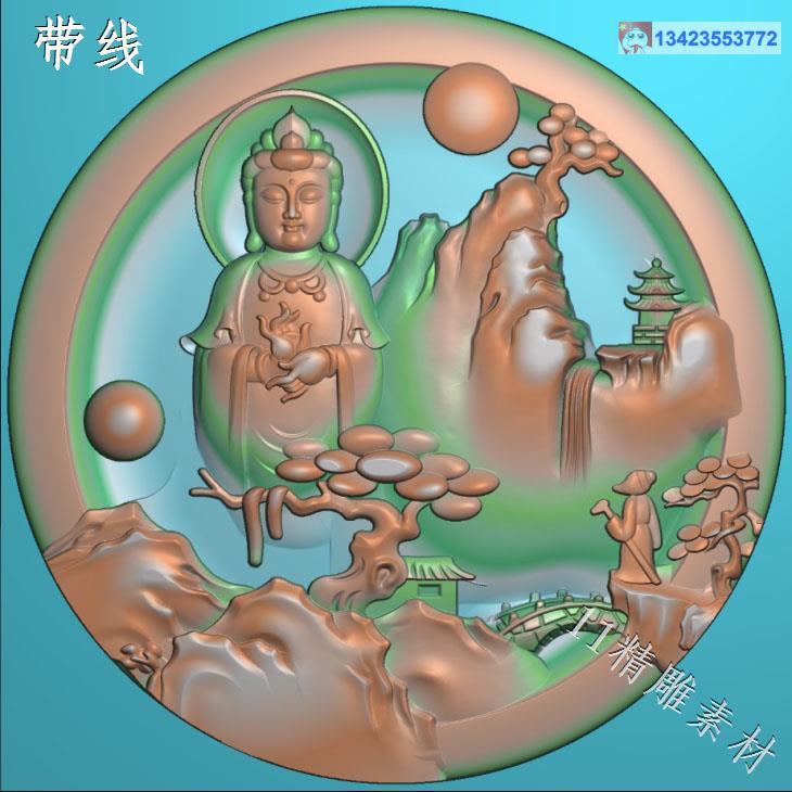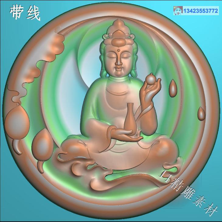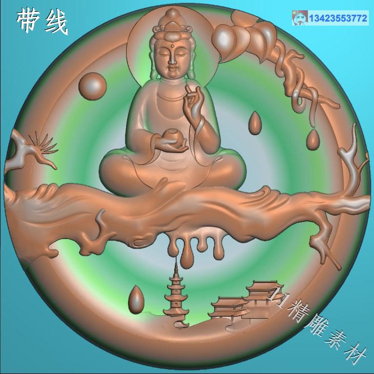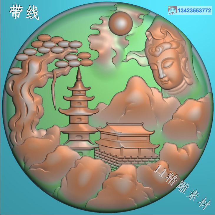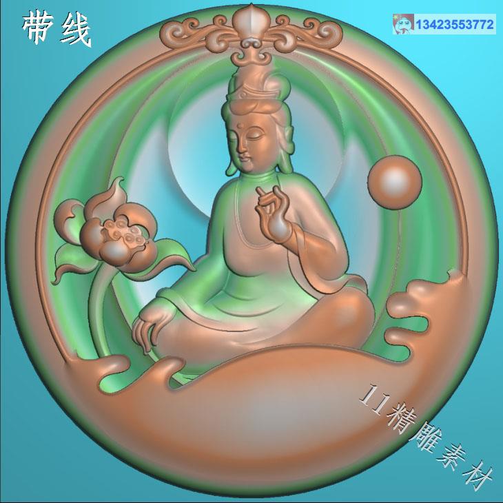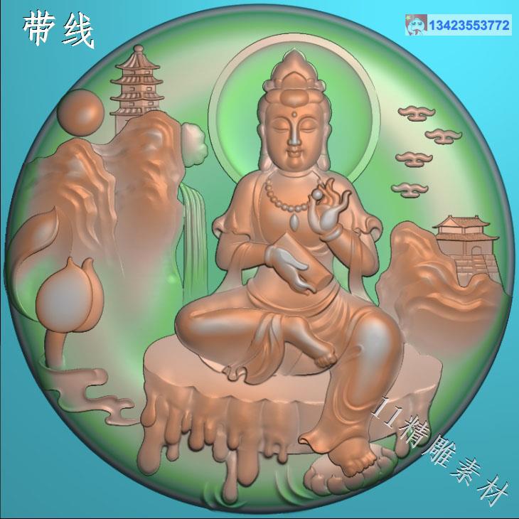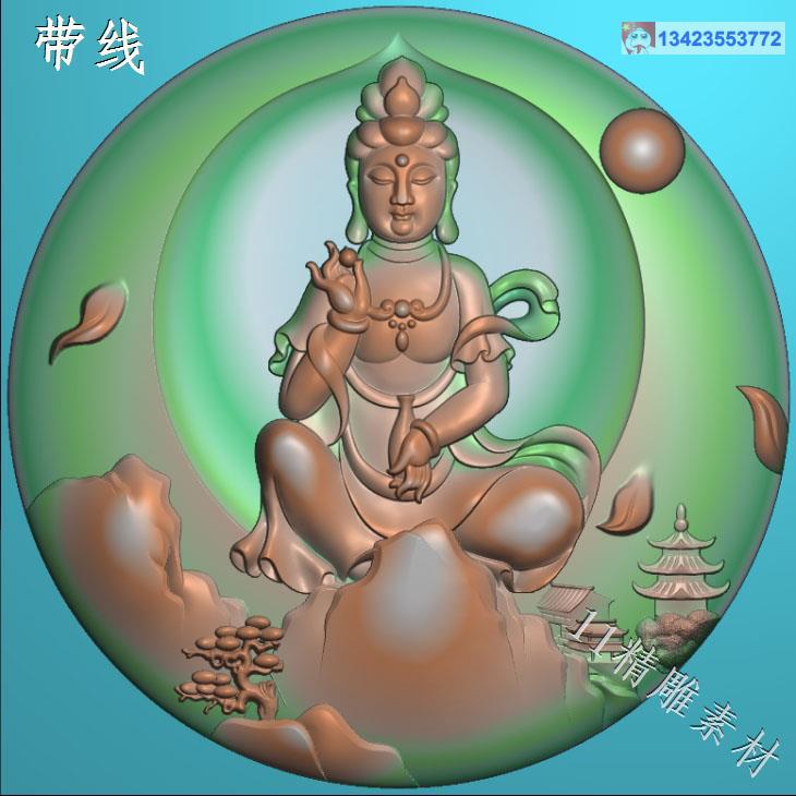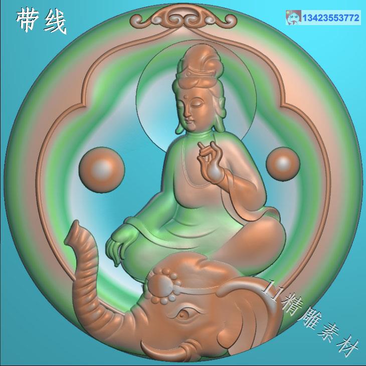 玉雕圆形普贤菩萨挂件带线精雕图 电脑雕刻素材11精雕图大全5网
