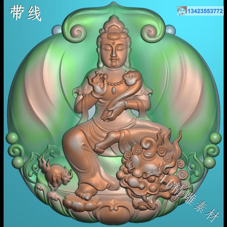 云底纹文殊菩萨46牌挂件带线精雕图 电脑雕刻素材11精雕图大全5网