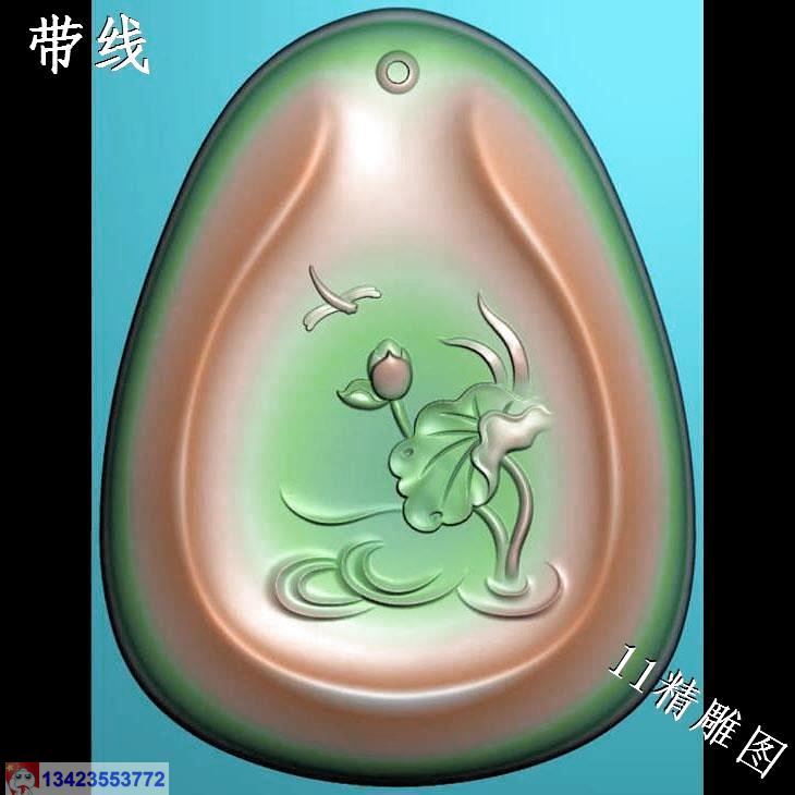 玉雕椭圆蜻蜓莲花挂件带线精雕图