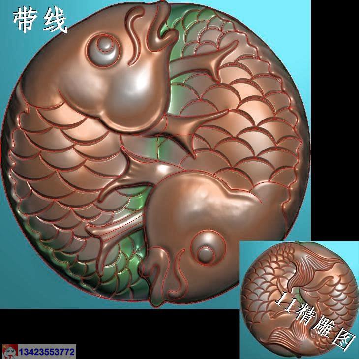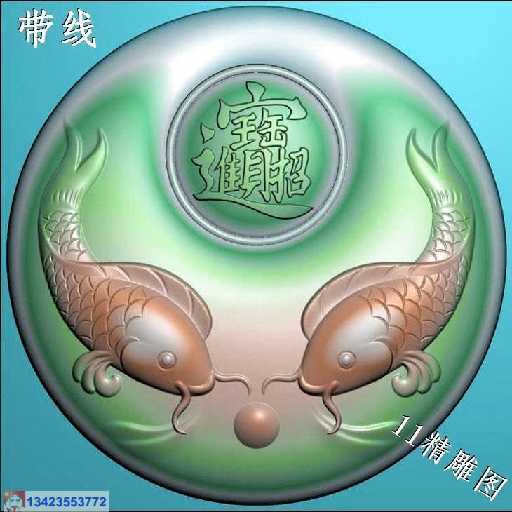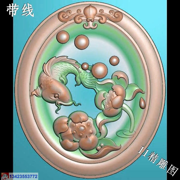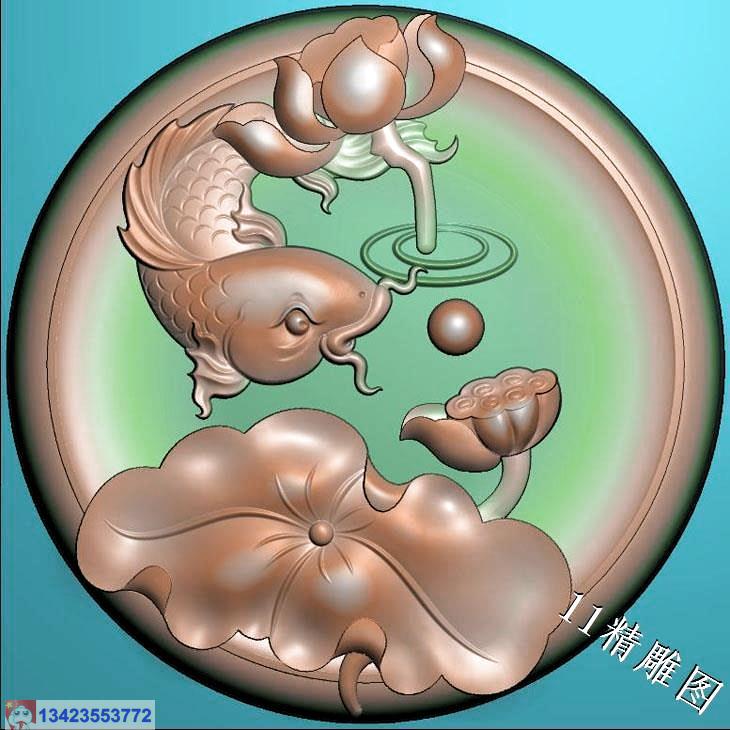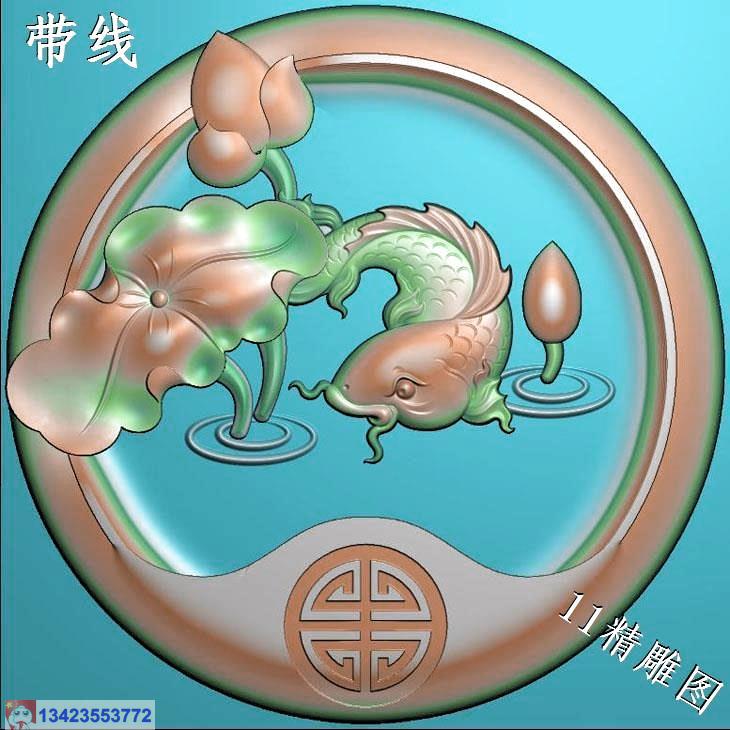圆形荷叶鱼挂件带线精雕图