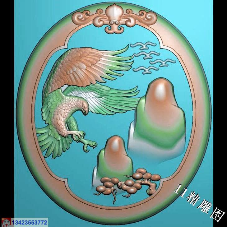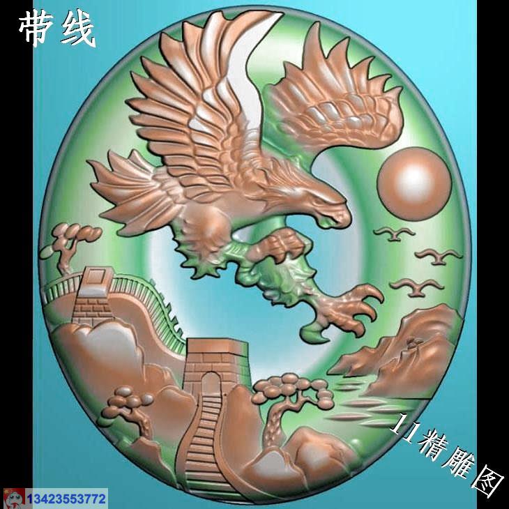 圆形老鹰挂件带线精雕图