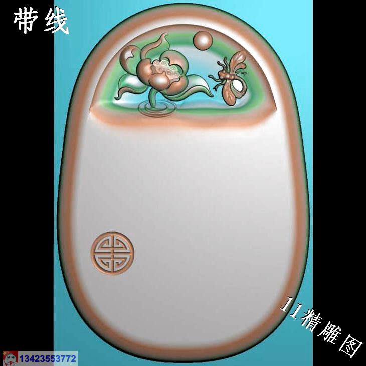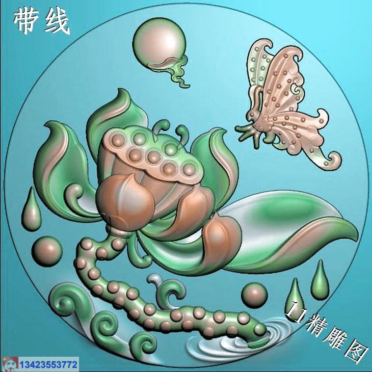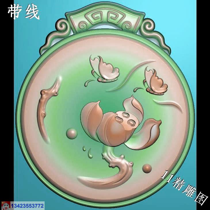 圆形蝴蝶荷花挂件带线精雕图