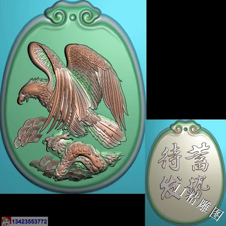 玉雕椭圆老鹰挂件精雕图