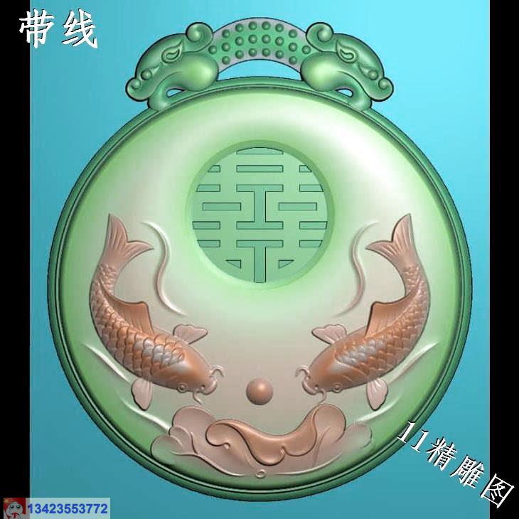 玉雕鱼挂件带线精雕图