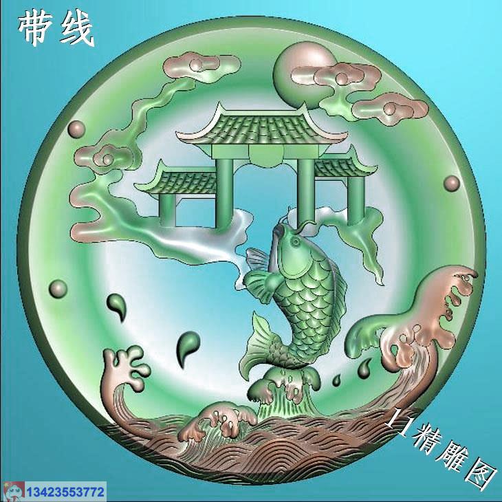 圆形鱼跃龙门挂件带线精雕图