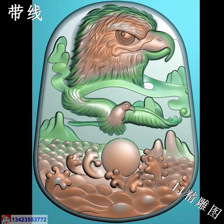 自由翱翔鹰头挂件带线精雕图