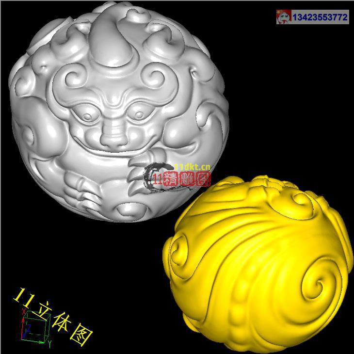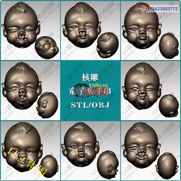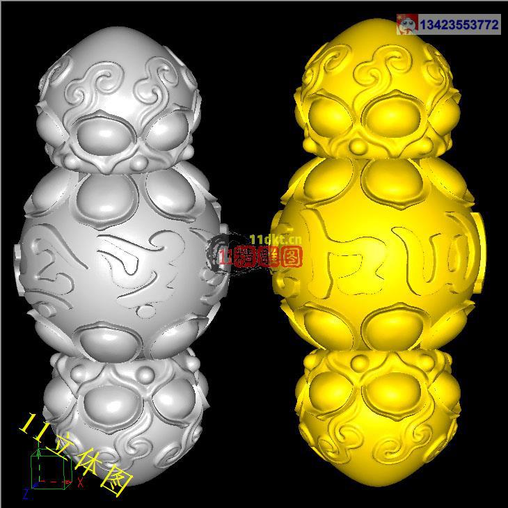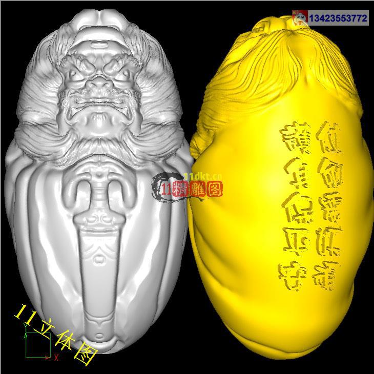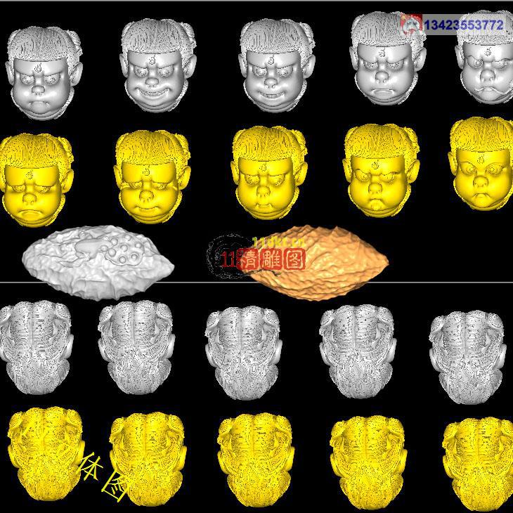 僵尸头手串核雕图立体圆雕图(BLG-361)1
