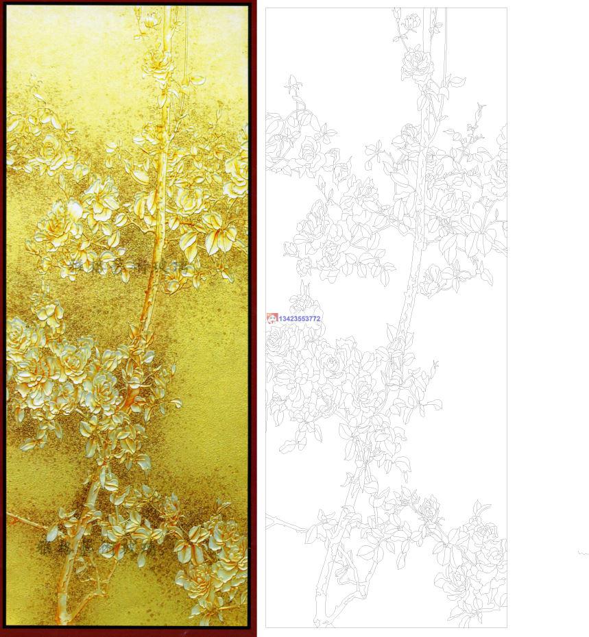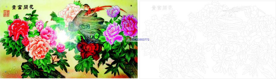 0462花开富贵CAD玻璃雕刻CDR线条矢量图