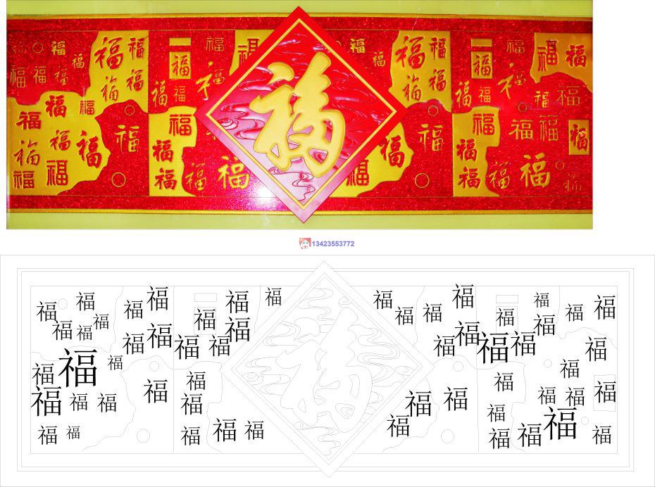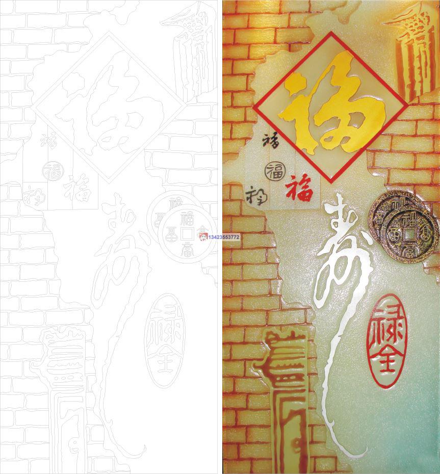 0787福寿双全CAD玻璃雕刻CDR线条矢量图
