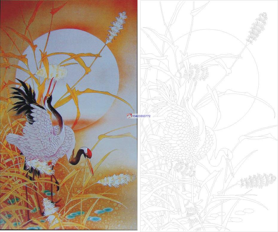 0918鹤原图CAD玻璃雕刻CDR线条矢量图