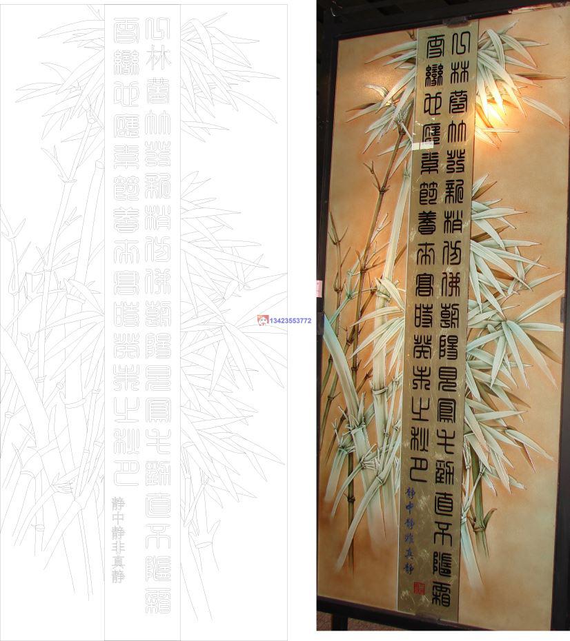 客户要的竹子CAD玻璃雕刻CDR线条矢量图