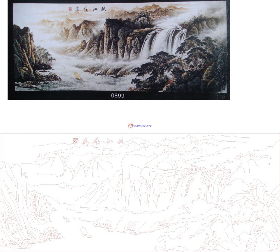 峡江雄姿CAD玻璃雕刻CDR线条矢量图