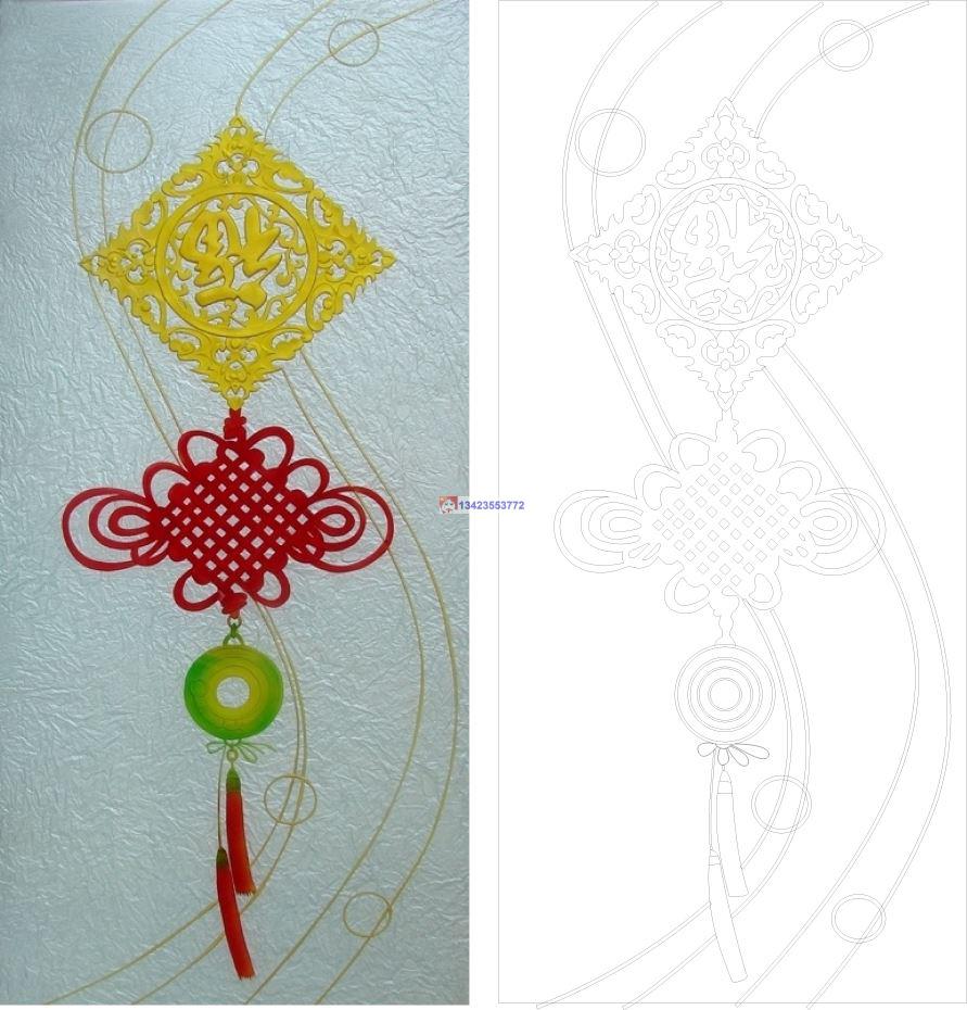 中国结原图0464CAD玻璃雕刻CDR线条矢量图