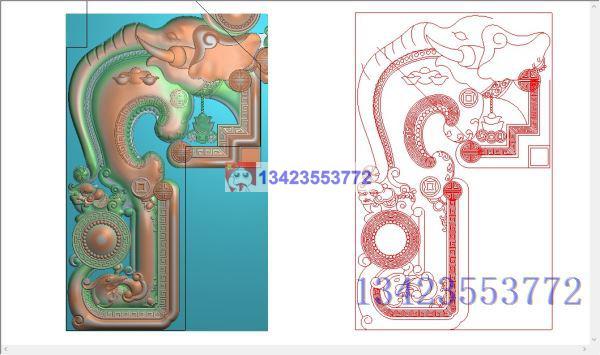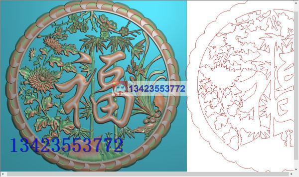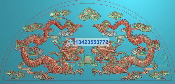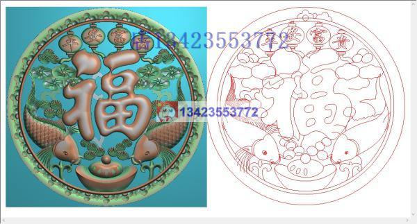 圆形 正中龙凤板 草龙草凤jdp文件 木雕素材