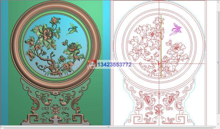牡丹花开富贵圆屏风花鸟牡丹花插屏座屏浮雕图