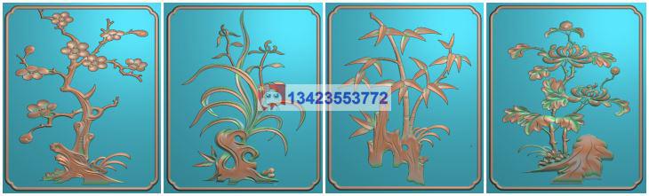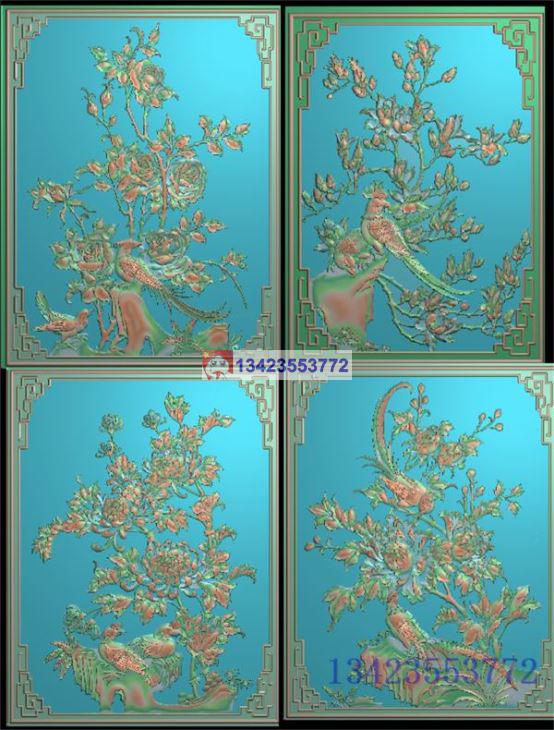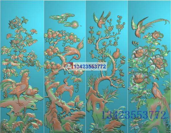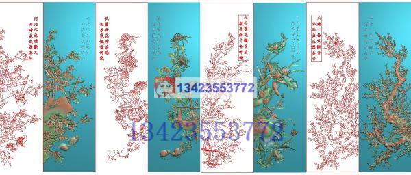 四季花鸟玉兰牡丹菊花月季门板有线条精雕图