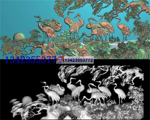 新品精雕图石雕浮雕图jdp灰度图挂件牌匾隔断屏风条幅松鹤长青