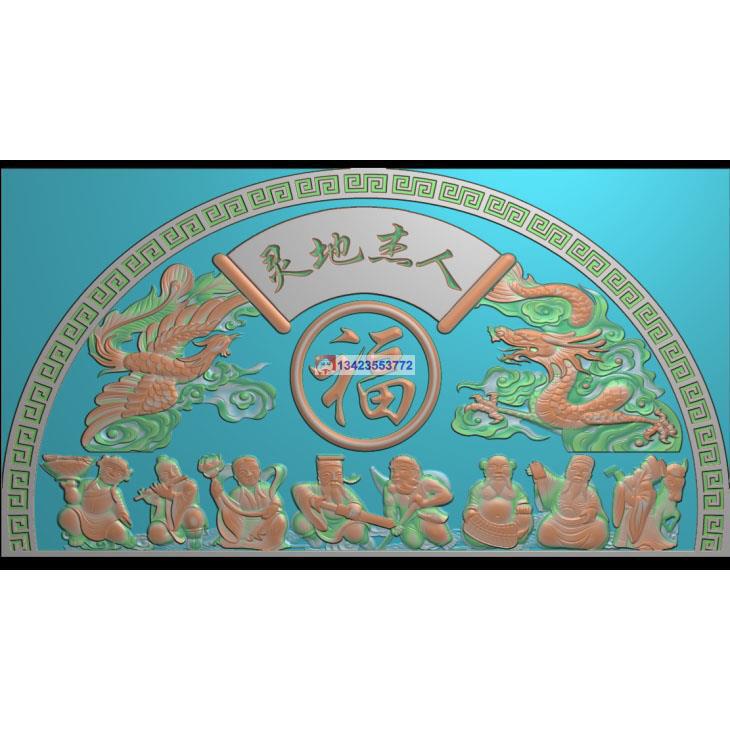 八仙石雕墓碑碑顶碑头抱鼓精雕图