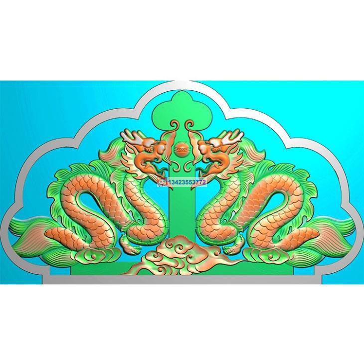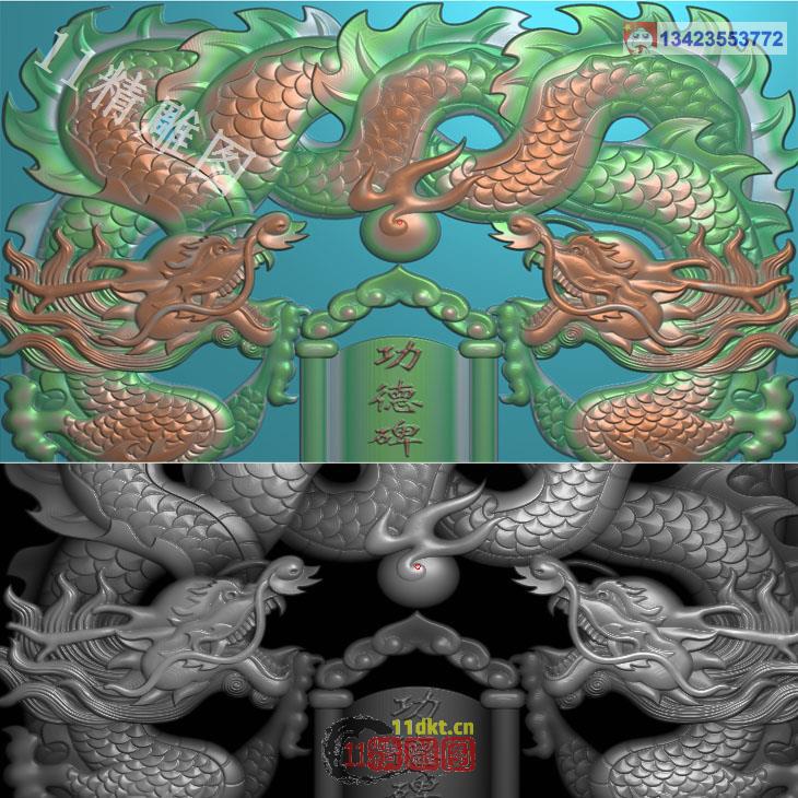 双龙无线石雕墓碑碑顶碑头抱鼓精雕图