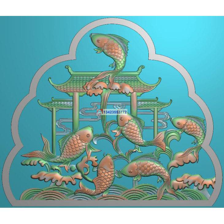 鲤鱼龙门石雕墓碑碑顶碑头抱鼓精雕图