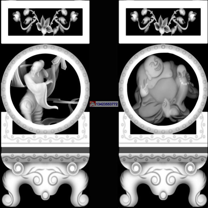 MBG1489 人物左右石雕墓碑称鼓抱鼓精雕图灰度图