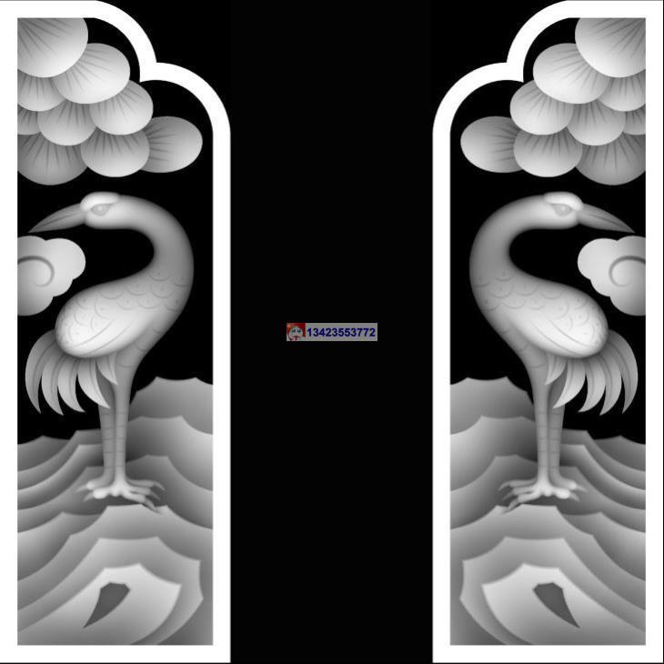 MBG1490松鹤石雕墓碑称鼓抱鼓精雕图灰度图
