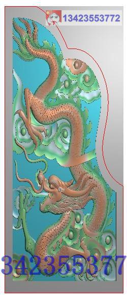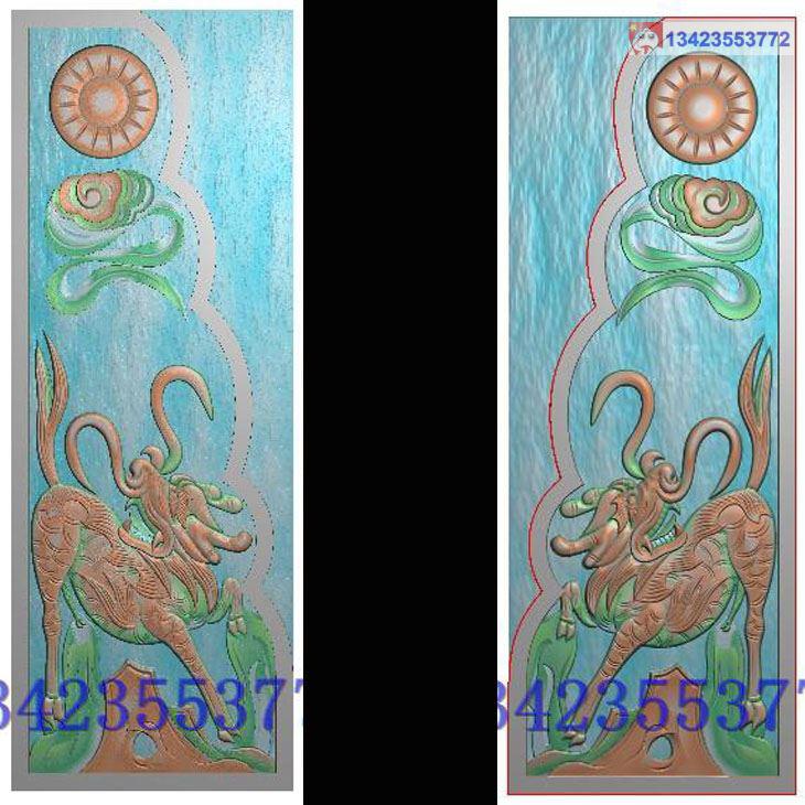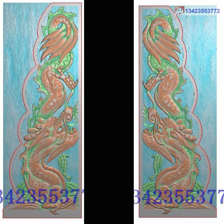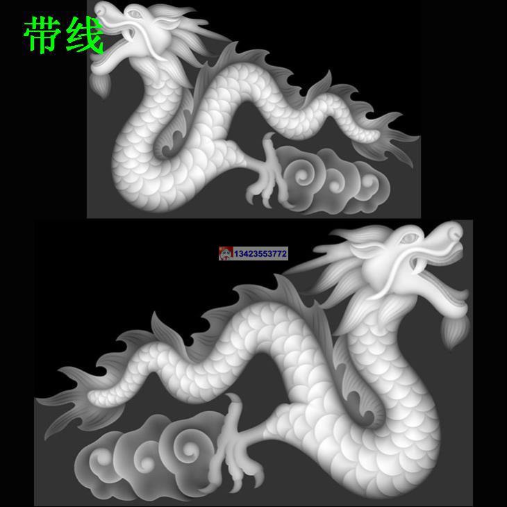 MBG1496单龙角花石雕墓碑称鼓抱鼓精雕图灰度图