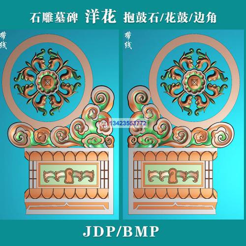 MBG-120石雕墓碑洋花抱鼓石花鼓精雕图石雕墓碑花鼓精雕图石雕墓碑边鼓精雕图