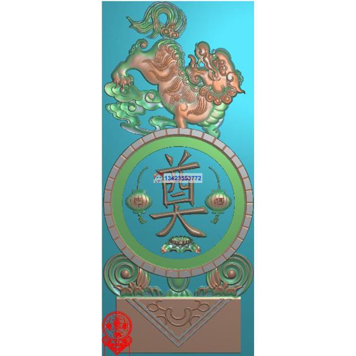 MBG1463福禄字石雕墓碑称鼓抱鼓精雕图灰度图