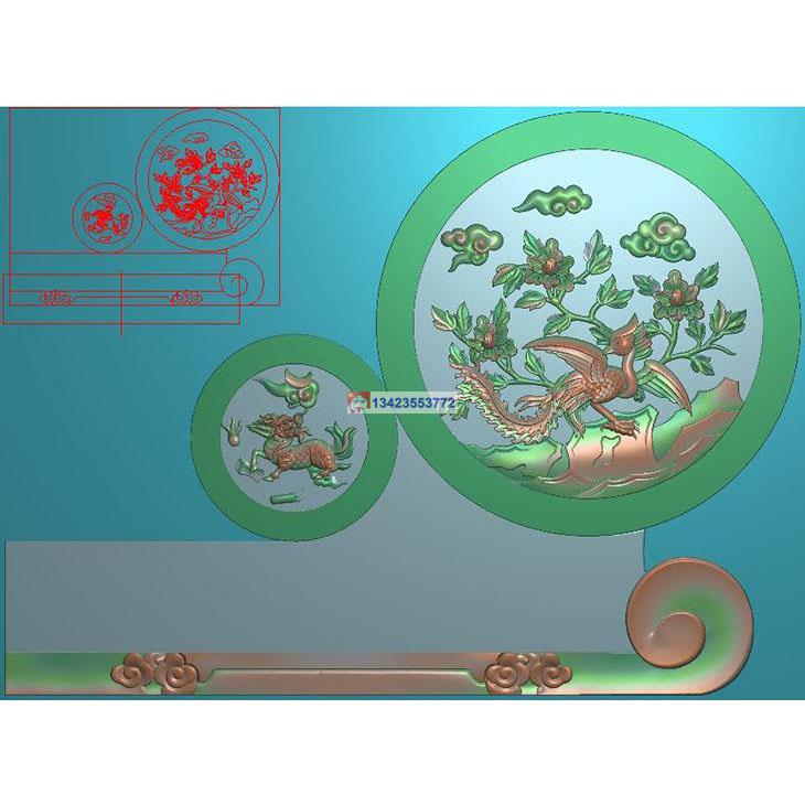 MBG1464如意吉祥石雕墓碑称鼓抱鼓精雕图灰度图