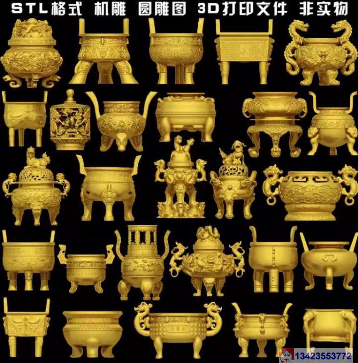 鼎火炉香炉三维立体图古铜器圆雕图STL文件电脑雕刻图3D打印模型