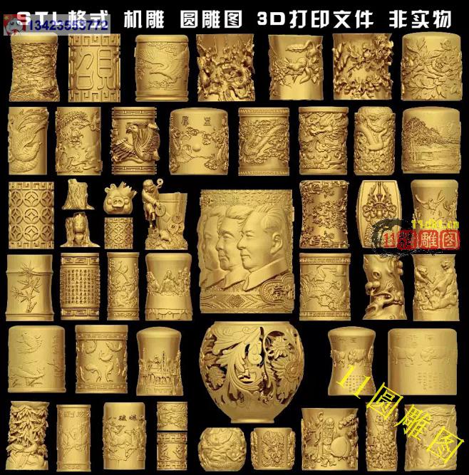 中式笔筒三维立体圆雕图STL文件雕像3D打印模型图纸48款合集