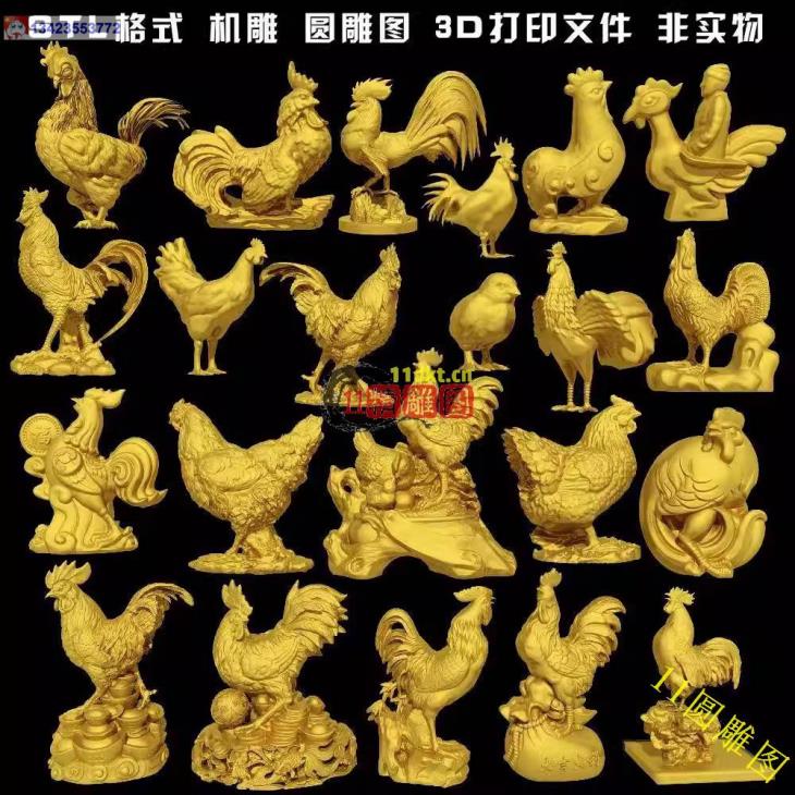 鸡公鸡母鸡小鸡生肖圆雕图雕刻机STL文件3D打印模型图纸合集