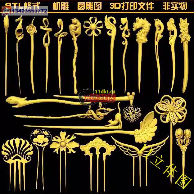 发簪子首饰发卡头箍饰品圆雕图STL文件3D打印模型图纸25款合集