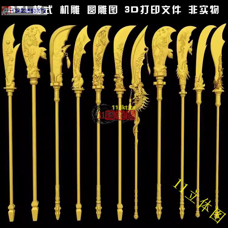 青龙偃月刀关羽兵武器圆雕图雕刻机STL文件3D打印模型图纸合集