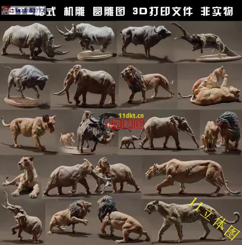 动物狮子大象犀牛野牛豹子圆雕图STL文件3D打印模型图纸合集