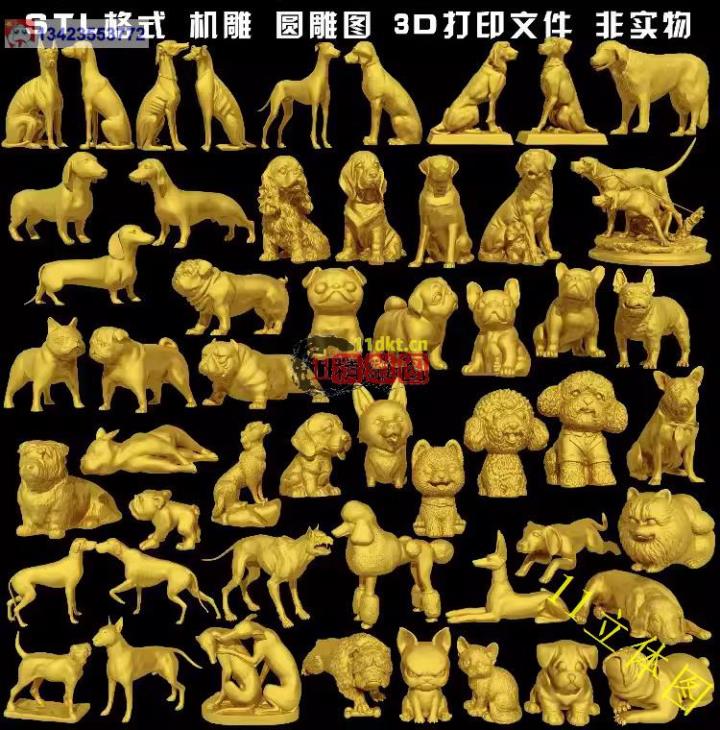 狗犬泰迪博美金毛沙皮圆雕图雕刻机STL文件3D打印模型图纸合集