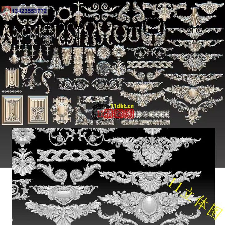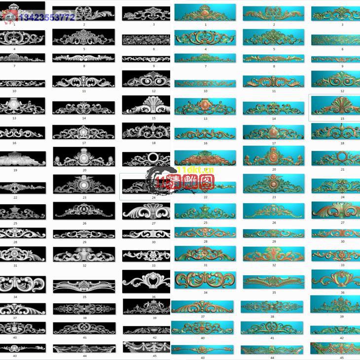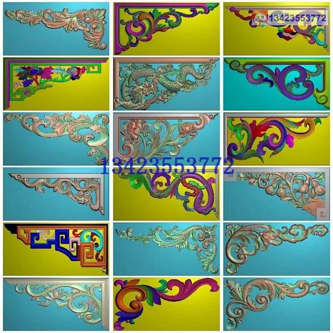 18个精品角花精雕图打包 描线角花洋花浮雕图灰度图雕刻图 木雕图