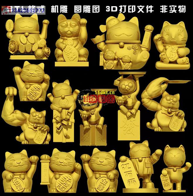 潮玩招财猫三维立体圆雕图雕刻STL文件雕像3D打印模型图纸合集