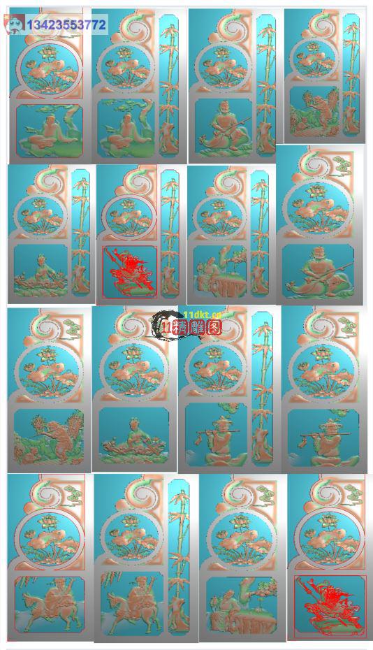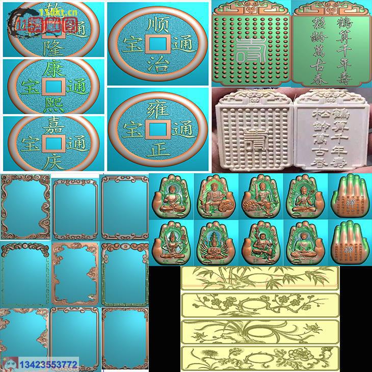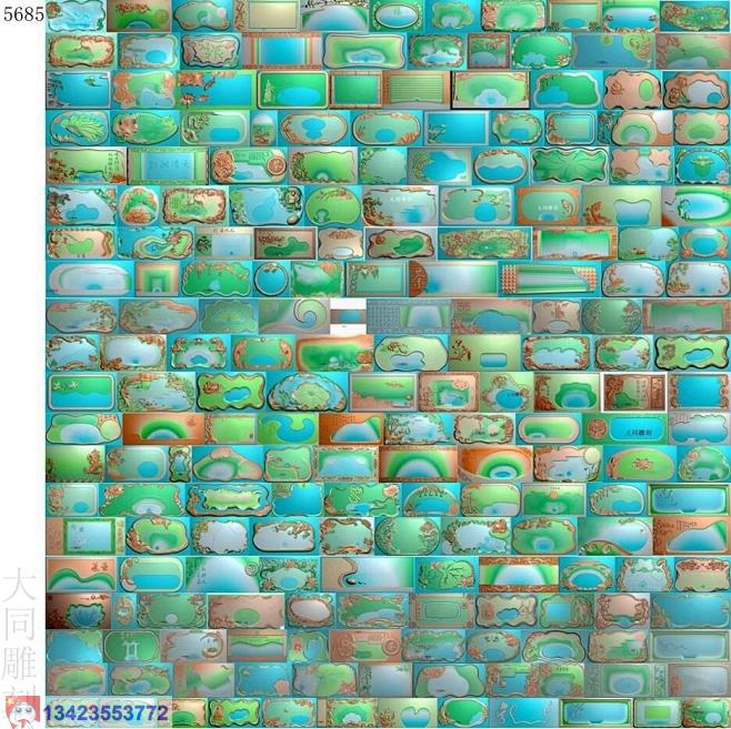 素材北京精雕图JDP+灰度图BMP浮雕图200个打包茶盘浮雕图