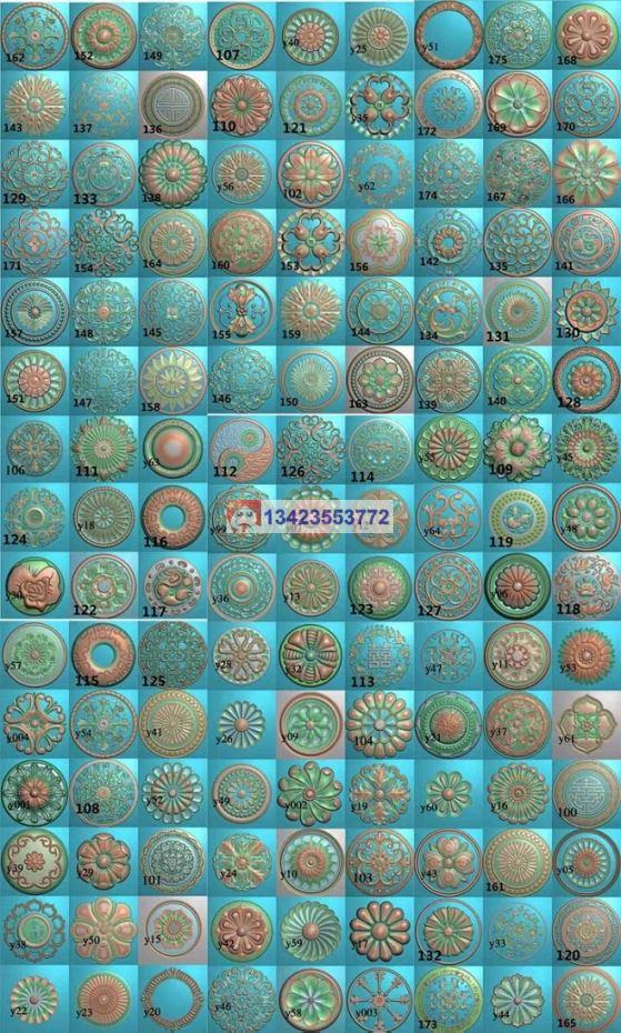 140个圆形圆盘洋花门花背板贴花精雕图灰度图木雕圆门花